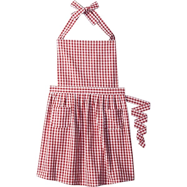 Amazon Com Vintage Gingham Kitchen Aprons Chef Bib Canvas Aprons Christmas Holiday Home Decorative 100 Pure Cotton Aprons In Large Size With Pockets Adjustable Neck Strap Long Ties Aprons Red Home Kitchen