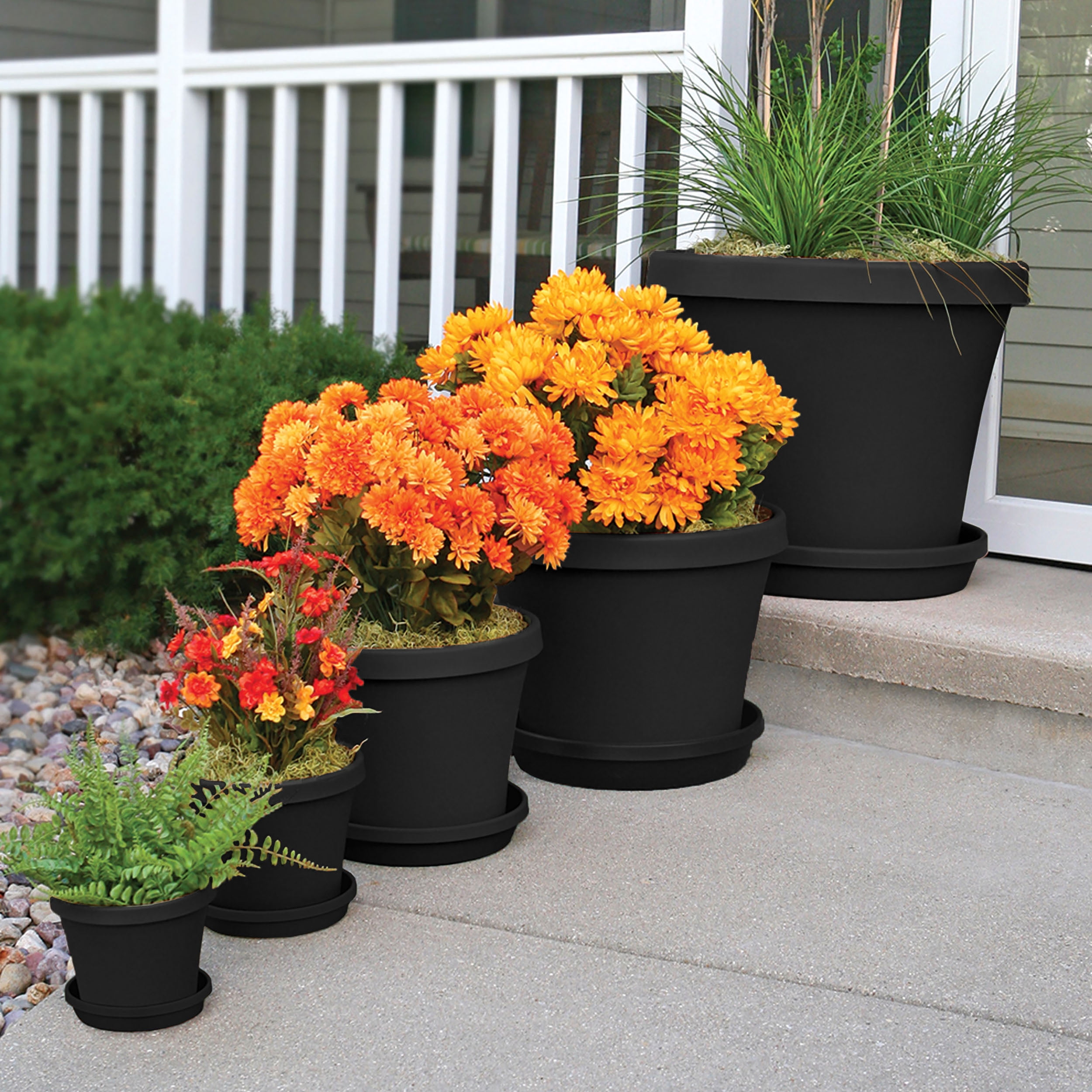 Bloem 14 In Saturn Round Resin Planter With Saucer Black Walmart Com