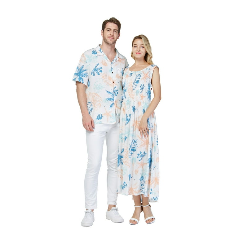 Couple Matching Hawaiian Luau Party Outfit Set Shirt Dress In Wedding White Walmart Com